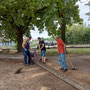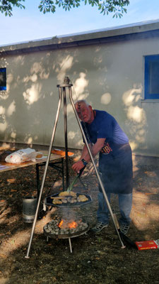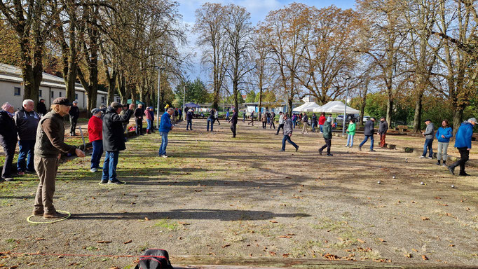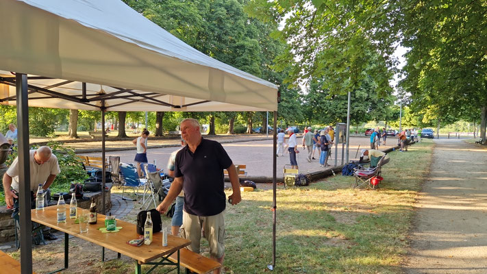 Der Platz wurde früh morgens von Blättern und Kastanien befreit, die Bahnen eingerichtet und die neueste Errungenschaft, unsere Grillstation aufgebaut und von Rainer ab der Mittagspause mit