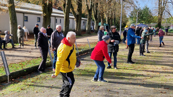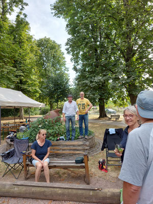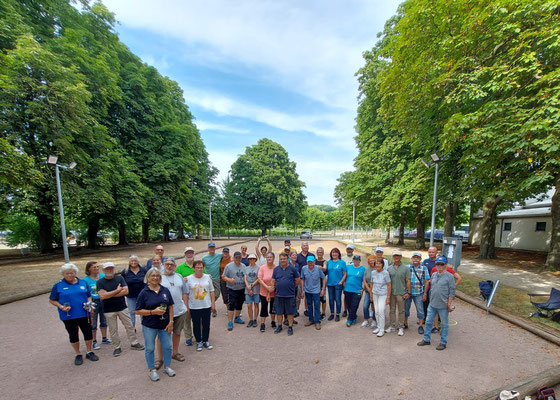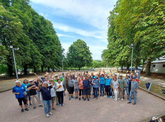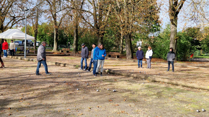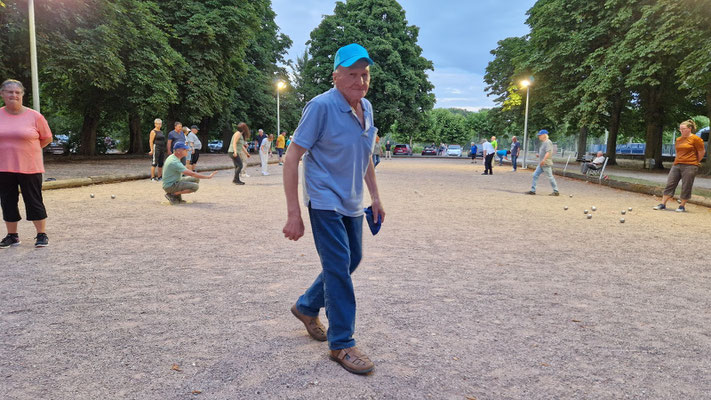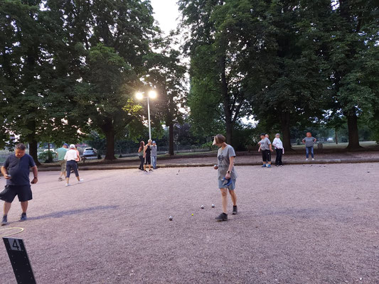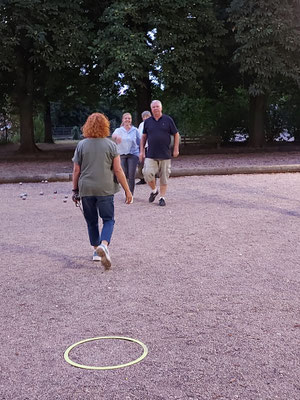 Zu diesem Zweck gibt es regelmäßige Treffen bei denen am letzten Freitag der Besuch unseres Bouleplatzes und ein paar gemeinsame Spiele auf dem Programm standen.