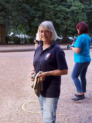 Auch die für die Stadt Worms zuständige Bewegungsmanagerin, Eva Wirth-Kunkel, interessierte sich für diesen Teamsport und nahm die Kugeln in die Hand.