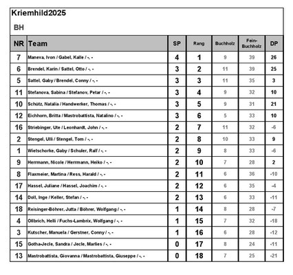 Unter den ersten vier Plätzen waren diesmal mit Carsta (1), Sabina (2) und Ellen (4) drei Frauen vertreten.