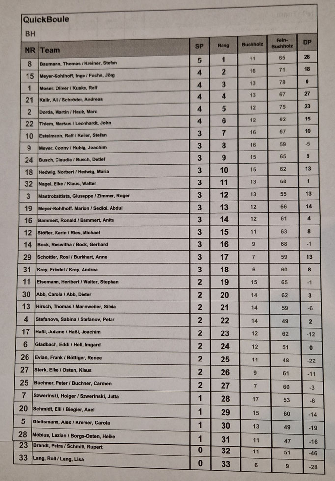 Dadurch wurden die Rheinbouler für die KO-Runde der letzten zehn gesetzt (fünf DM-Plätze wurden ausgespielt) und man hatte dadurch zwei Spielrunden Pause bei ziemlich kühlem und windigem Wetter.